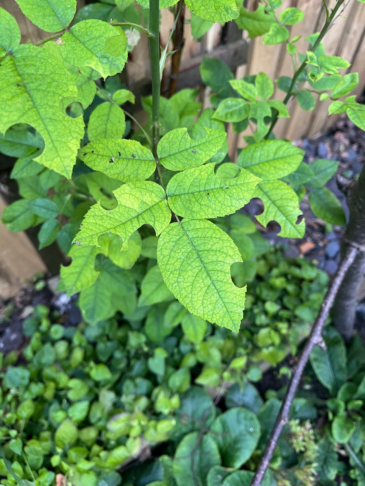 I’ve been feeding the Foxes while my parents are away, but today I headed home to discover something has been cutting little holes in my plants!