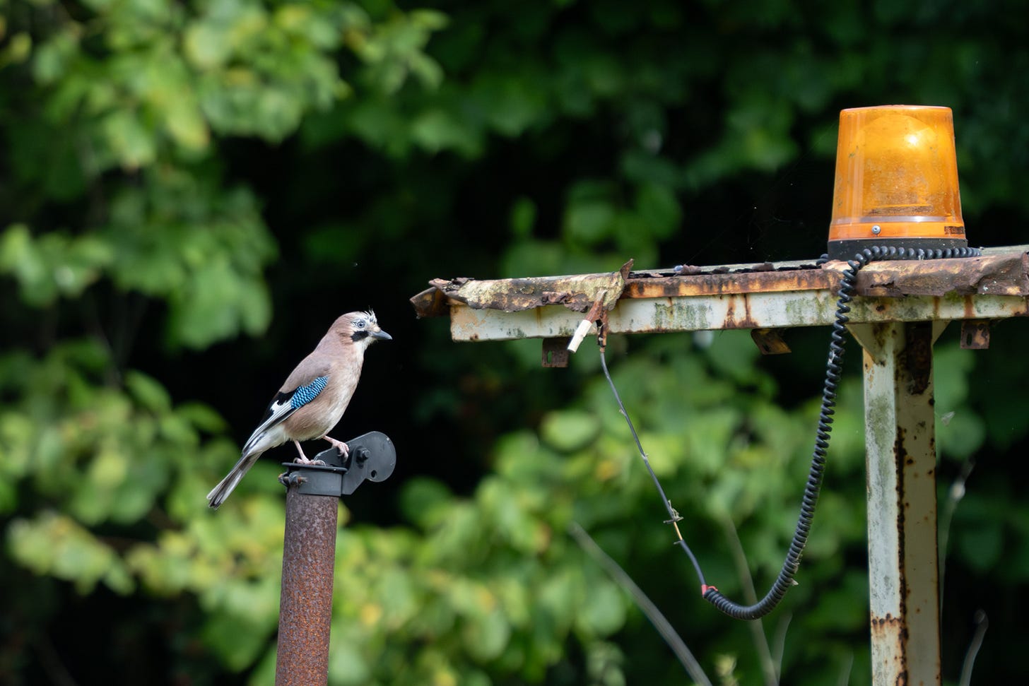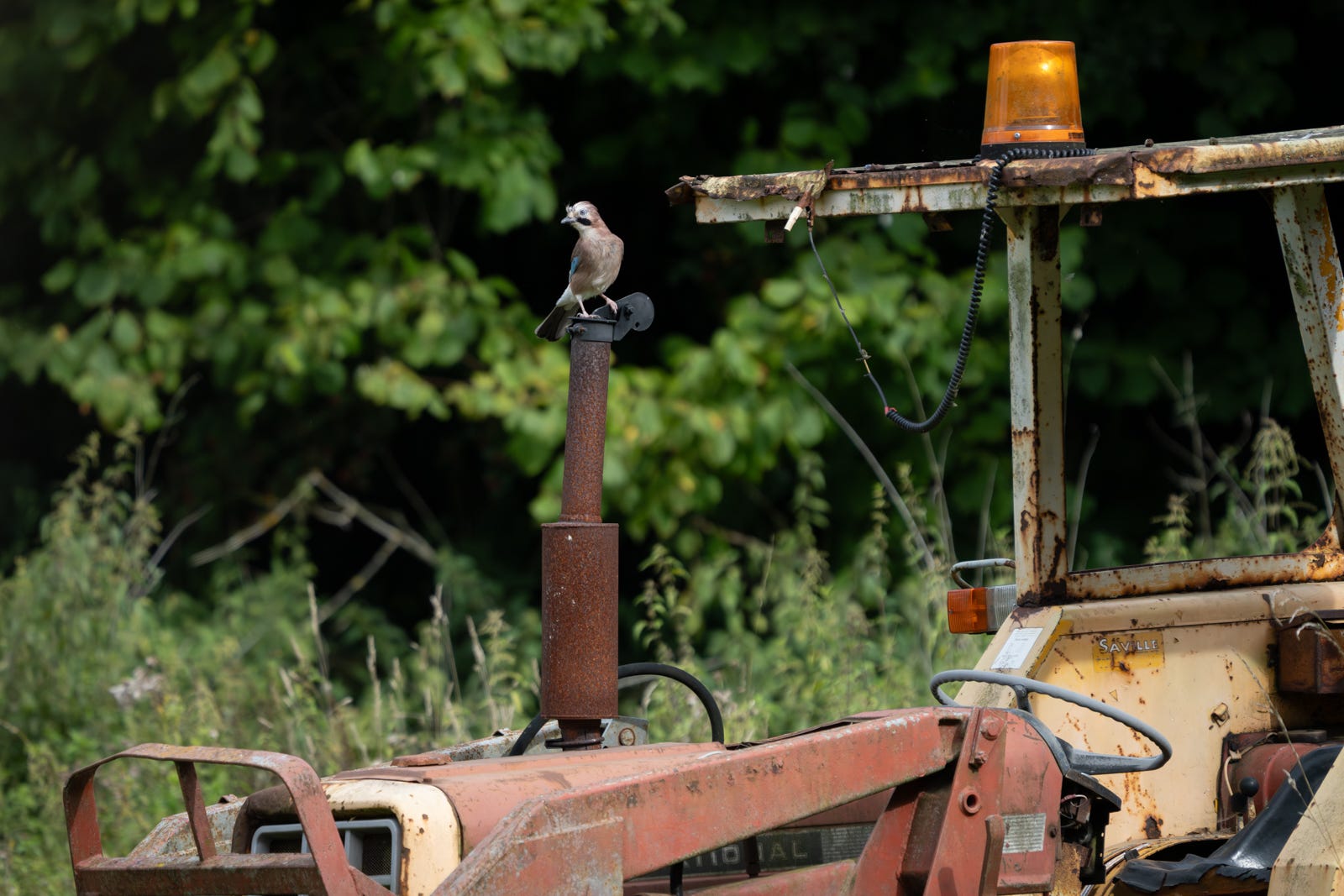 This Jay was posing on old farm machinery, looking decidedly like it was up to something.