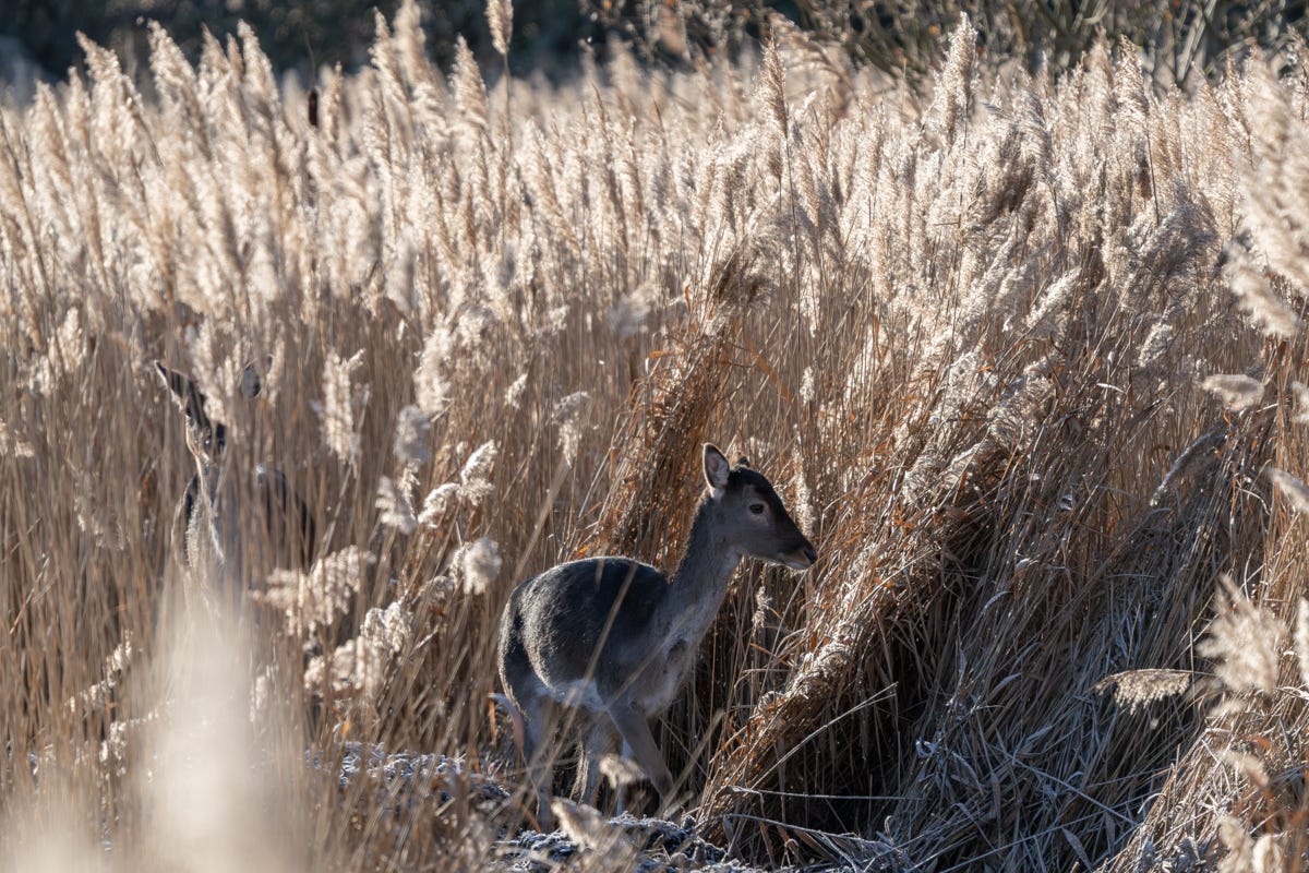 Dad finally noticed some movement – this pair of elegant Fallow Deer – but the sound of our shutters sent them scarpering into an almost invisible tunnel in the reeds.
