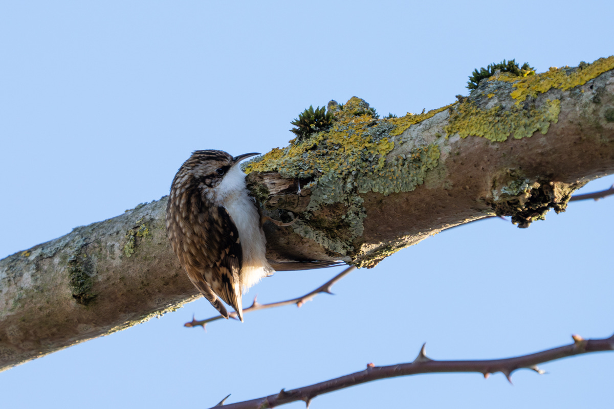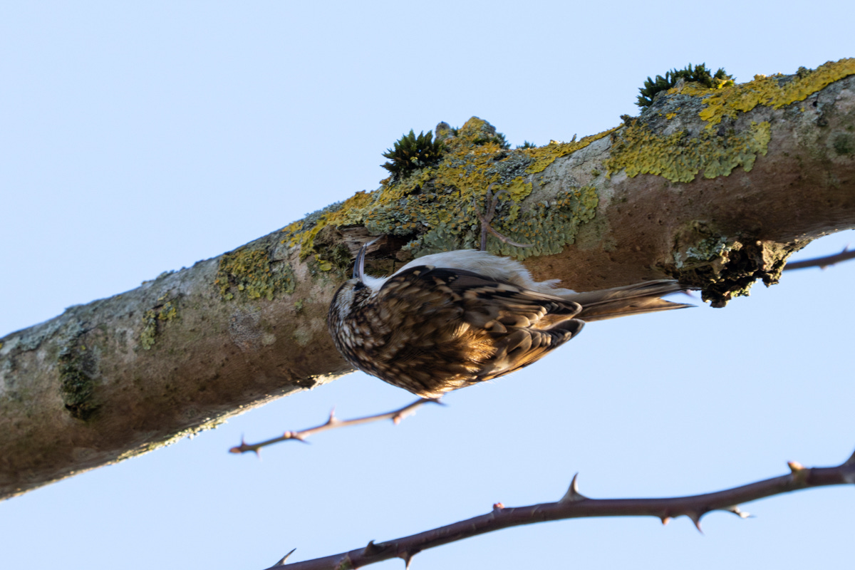 If you look very closely at the photo below, you can see a small white grub, presumably clinging on for dear life, in the Treecreeper’s beak.