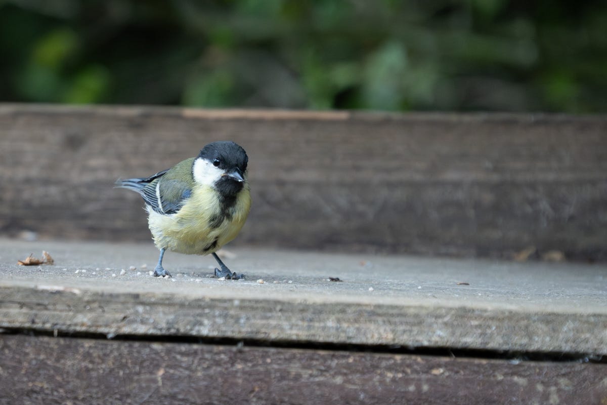 The yellow breast, olive green back and dark legs are shared with the Blue Tit, but this bird averages 18g to the Blue Tit’s 11g, so it’s much bigger. They do also have an alarm call and other sounds that anyone with a bird feeder will likely recognise – the alarm sounds to me like “seep, DWEEE-EEEP”, and the others are pleasant chirps and tweets.