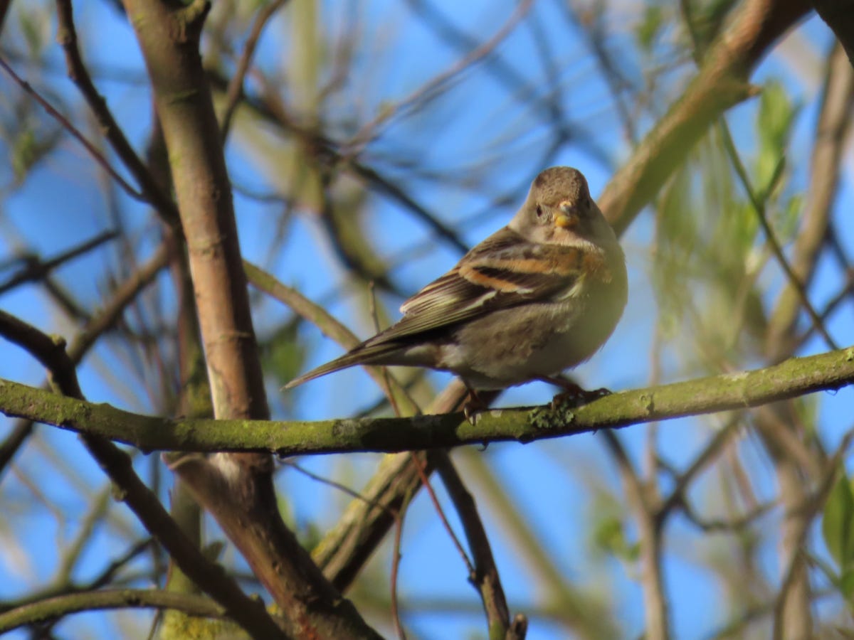 Female finches can often resemble female House Sparrows, too – like this female Brambling.