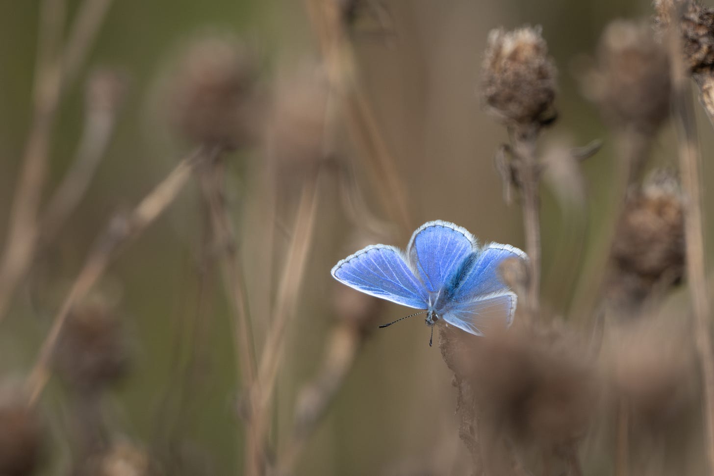 The Buddleja blooms are magnets for butterflies like this Large White, while the Common Blues prefer to hang out in long grass where the Knapweed and Ragwort was flowering not long ago.