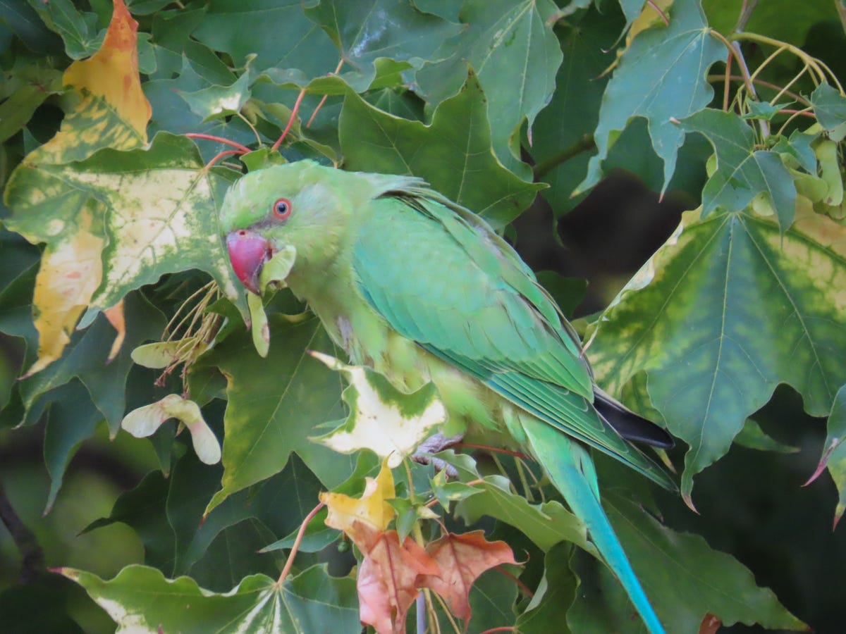 Ring-Necked Parakeets are the most exotic feathered residents, except, perhaps, for the Pelicans ‘round the corner in St James’ Park. The parakeets are everywhere, and rumours about how they came to live here are rife.