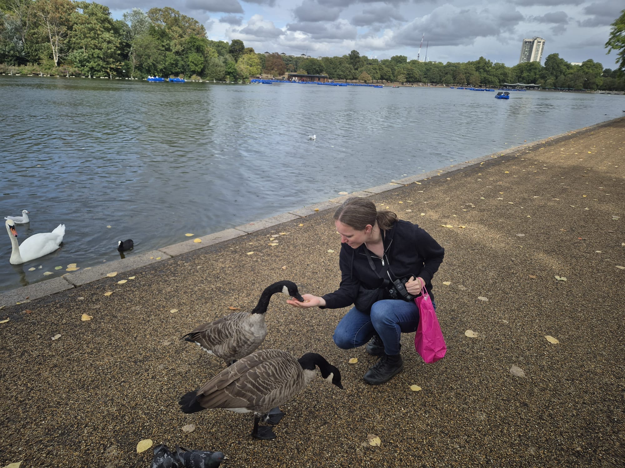 This week, we’re not escaping to a chalk stream or peering through reeds to see what we can spot. No, we’re in the ritzy Western side of London, at Hyde Park. I met a dear friend of mine for a mystery activity, and to my delight she arrived with a pink gift bag full of peanuts! A potter around the park it is, then.