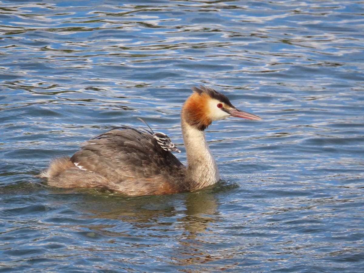 Those throngs are a pretty wild mixture, at times. The only birds that really kept their distance from people were the Great-Crested Grebes, who at this time of year have humbug babies with them – sometimes riding on their backs! And the Goldeneye and Pochard ducks were both a little shy.