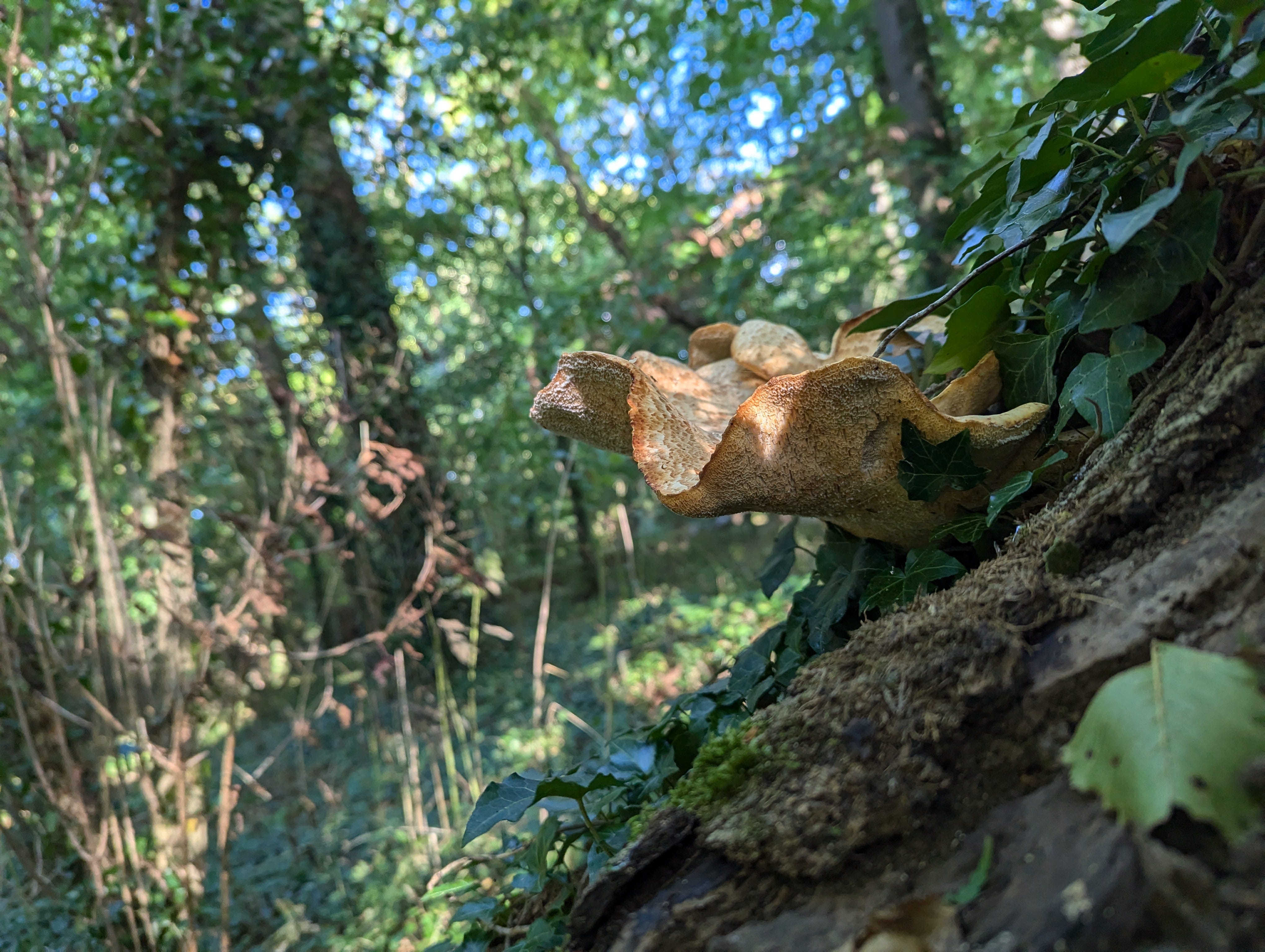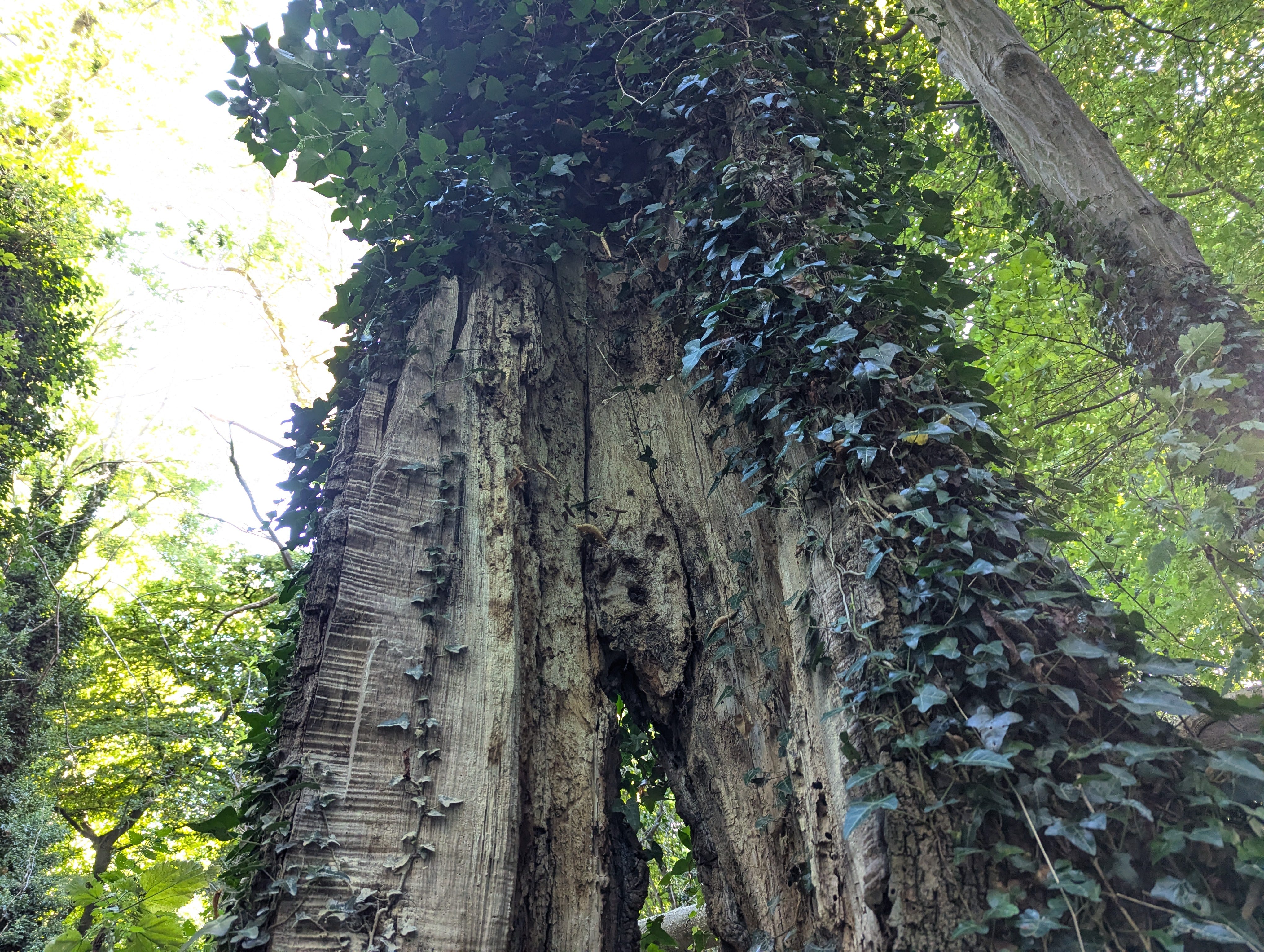 Ivy climbs and covers everything that the moss does not.