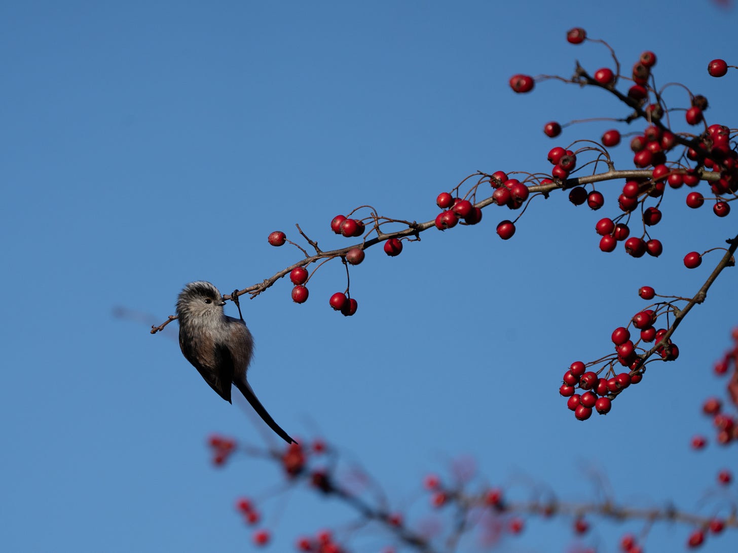 There’s the Blue Tit’s sharp ‘peep peep!’ and the Great Tit’s growly chatter, all with a backdrop of high-pitched tweeting from the Long-Tailed Tits.