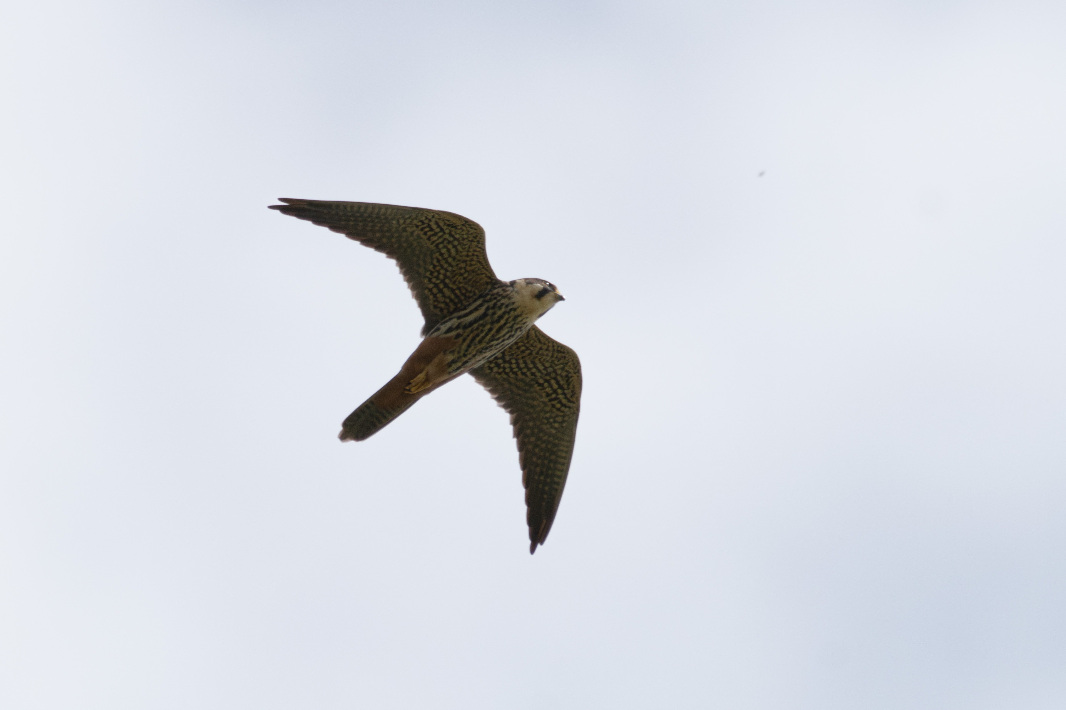 Not the sharpest picture, but just look at this smart little bird! This is another summer visitor, the Hobby, and they provide birders with hours of fun. They race around the sky, wheeling and diving, catching dragonflies and other insects, which they eat from their claws while still flying. Mesmerising.
