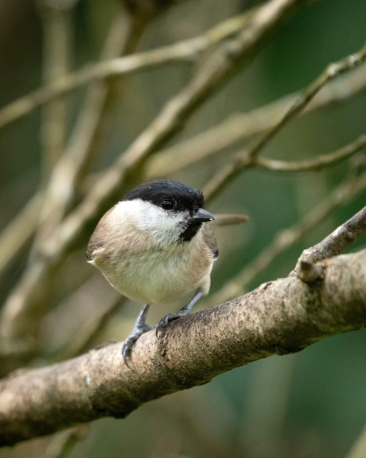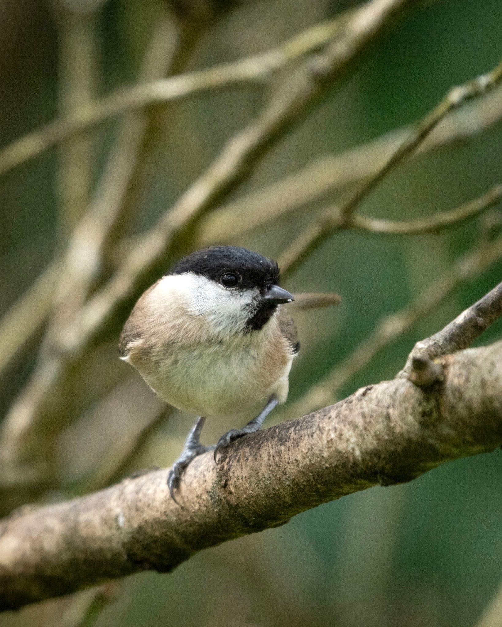 I was sitting on the crooked wooden bridge over the leat when I heard an unfamiliar call. To my surprise, a pair of Marsh Tits was at the feeder just a couple of metres away. My grandma’s eyesight was starting to fail, so she had never noticed these little ones to mention them to me.