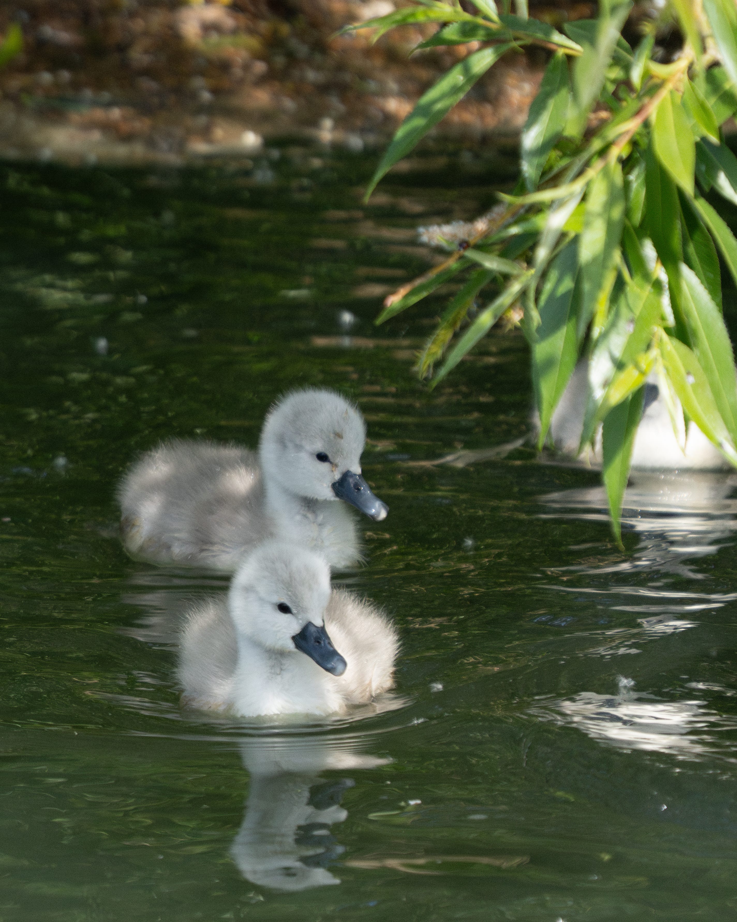 The adult swans are doing their best to offend passers by so that a healthy distance is maintained. (It’s working.)