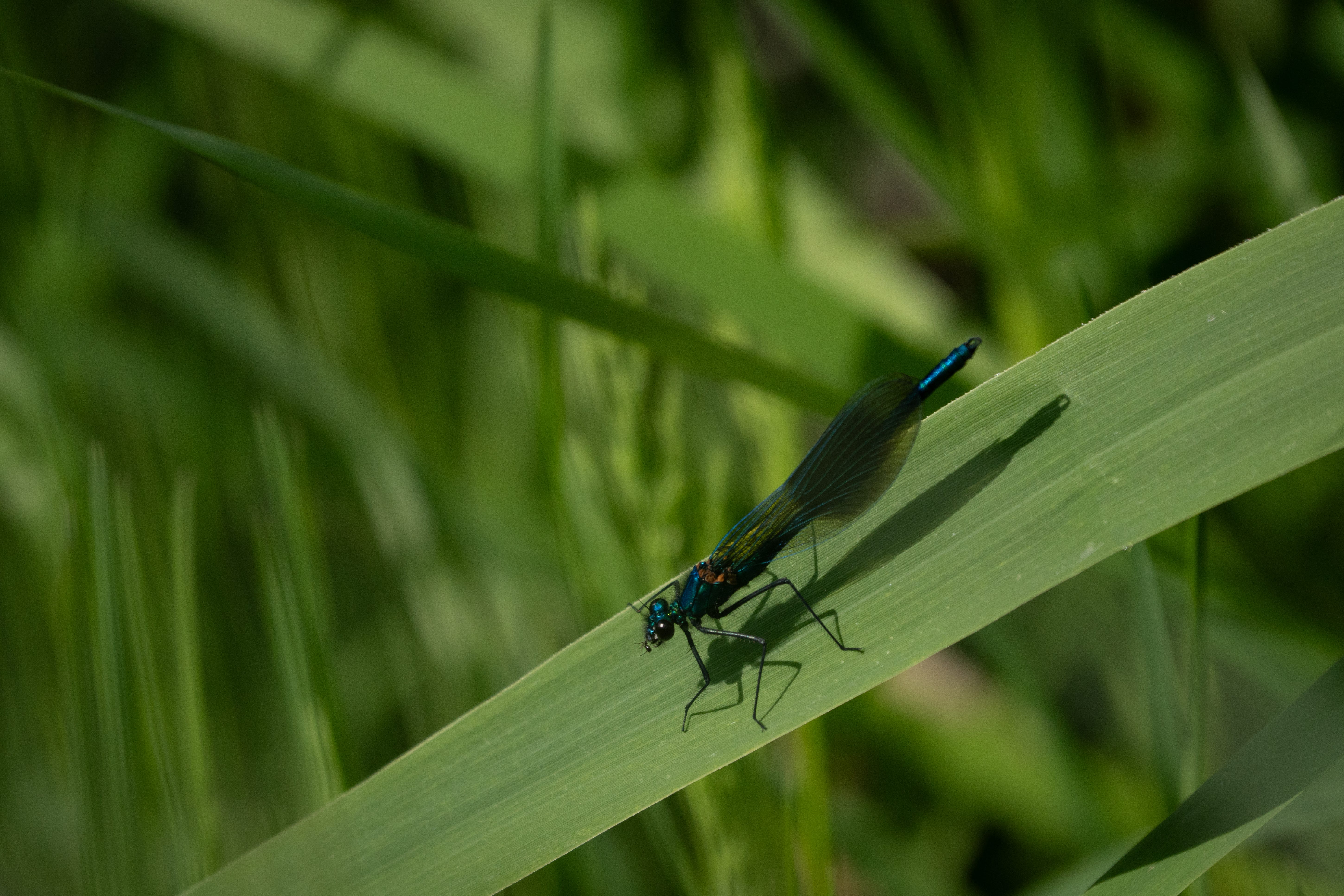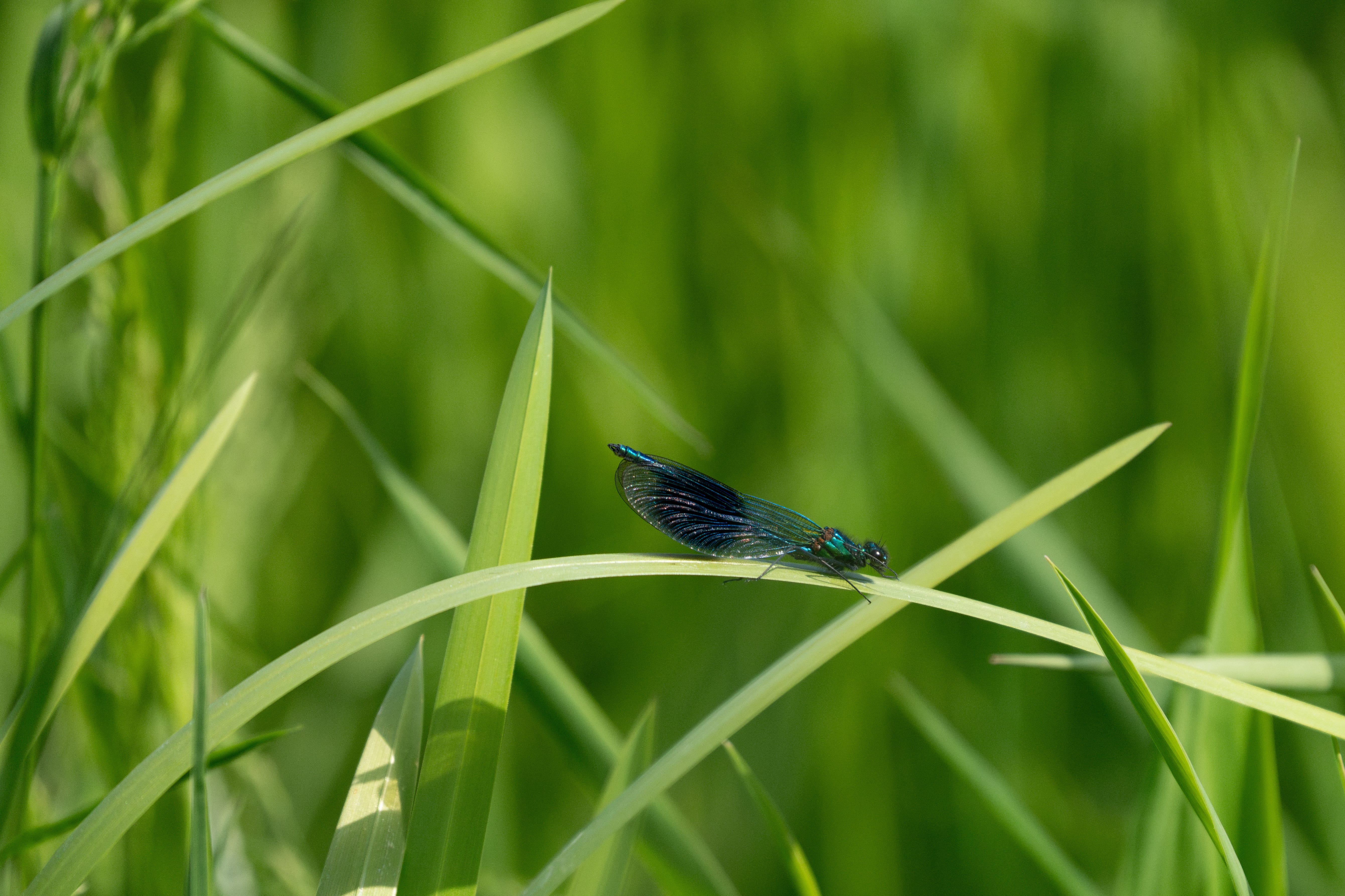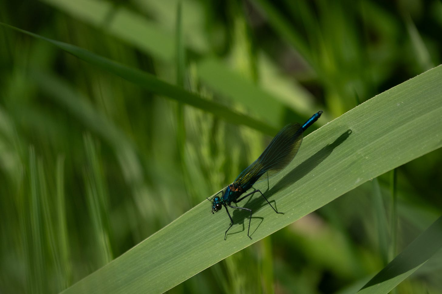 This week, keep an eye out for little piles of ‘glitter’ on the ground. These piles are courtesy of two species – the Robins mention above, and the banded demoiselle in these pictures. The Robins (and other birds) catch these beautiful creatures and feed them to their young, leaving a pile of inedible wings behind like a slightly grim confetti.