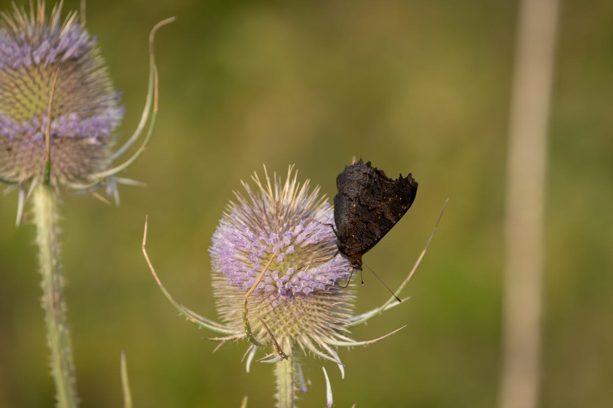The chalky hills are full of flowers – orchids, small wildflowers, teasels and bramble blossom. There are Burnet Moths (and their caterpillars) and bumblebees everywhere.